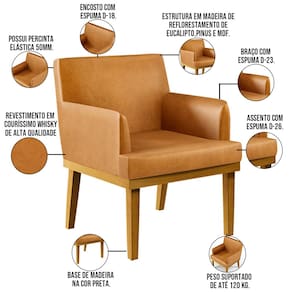 Não é novidade para ninguém que uma boa poltrona precisa ser bastante confortável, com materiais de qualidade e alta durabilidade. O Kit 04 Poltronas Decorativas Sala de Estar Base Mel Beatriz W01 Couríssimo Whisky - Lyam Decor vem exatamente com essa proposta, sofisticada e versátil, com certeza irá valorizar ainda mais seu ambiente.