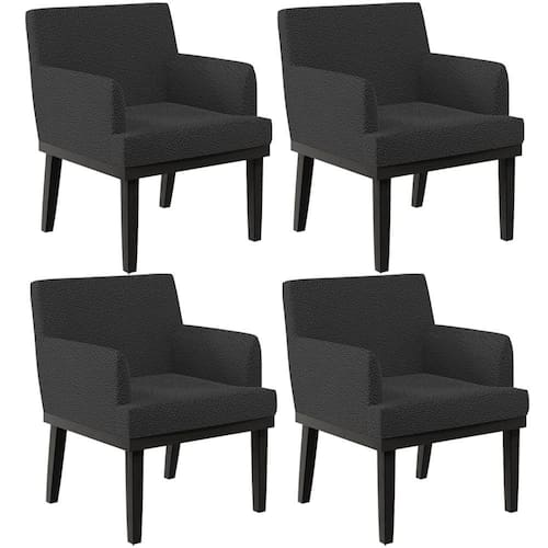 Não é novidade para ninguém que uma boa poltrona precisa ser bastante confortável, com materiais de qualidade e alta durabilidade. O Kit 04 Poltronas Decorativas Sala de Estar Base Preto Beatriz W01 Bouclê Preto - Lyam Decor vem exatamente com essa proposta, sofisticada e versátil, com certeza irá valorizar ainda mais seu ambiente. As possibilidades para sua disposição são infinitas, seja para escritório, recepção, sala de espera ou estar, entre outras, seu conforto e beleza transformarão sua decoração por inteiro. Cabe mencionar também o revestimento em Bouclê, que contrastam perfeitamente com os pés na cor Preto dando uma sutil delicadeza à peça e garante o destaque que ela merece. Adquira já o seu!