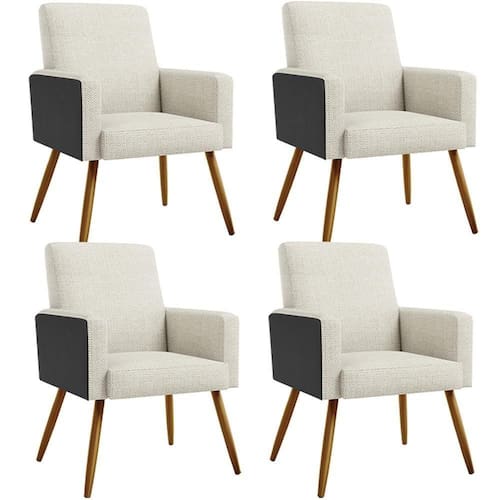 Não é para ninguém que uma boa poltrona precisa ser bastante confortável, com materiais de qualidade e alta durabilidade. O Kit 04 Poltronas Decorativa Maria W01 Pés Palito Linho Champagne Couríssimo Preto - Lyam Decor vem exatamente com essa proposta, sofisticado e versátil, com certeza irá valorizar ainda mais seu ambiente.