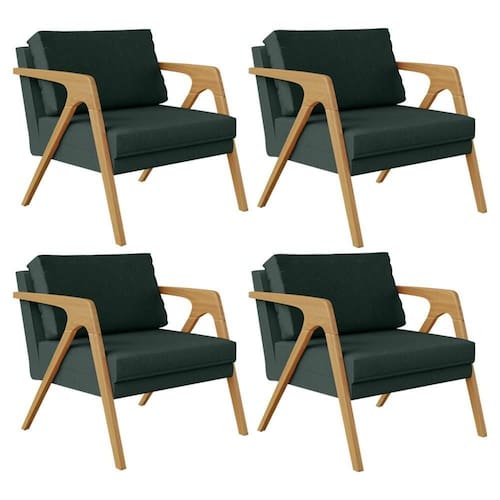 O Kit 04 Poltronas Decorativa Para Sala Pietra Estrutura De Madeira L02 Linho Verde Musgo - Lyam Decor se sobressai em qualquer ambiente, permite diversas combinações harmônicas e ainda proporciona muito aconchego. A mistura da estrutura de madeira com o revestimento convencional dela, somados ao seu ar geométrico garantem extrema idade e personalidade para sua decoração.