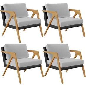 O Kit 04 Poltronas Decorativas Sala Estar Pietra L02 Couríssimo Preto Linho Cinza - Lyam Decor se sobressai em qualquer ambiente, permite diversas combinações harmônicas e ainda proporciona muito aconchego para sua decoração! O link da estrutura de madeira com a composição de revestimentos em linho e couríssimo, somados ao seu design geométrico garantem extrema idade, além de expressar toda a elegância que ele possui.