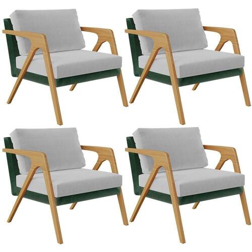 O Kit 04 Poltronas Decorativas Sala Estar Pietra L02 Facto Verde Musgo Linho Cinza - Lyam Decor se sobressai em qualquer ambiente, permite diversas combinações harmônicas e ainda proporciona muito aconchego para sua decoração! O link da estrutura de madeira com a composição de revestimentos em linho e facto, somados ao seu design geométrico garantem extrema idade, além de expressar toda a elegância que ele possui.
