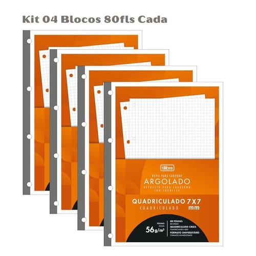 Kit Contém: 04 Unidades de Refil de Folhas Quadriculada 80 Folhas Cada.