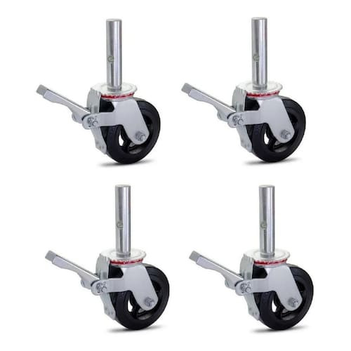 Rodizio para andaime colson com freio glef62bfr- nbr 6494 e nr 18características- antirrisco- base em aço- rodizio de borracha- roda em ferro fundido- com freio para travamentocapacidade- carga máxima por rodízio: 225 kg- o kit com 4 rodas suporta até 900 kg- para movimento, subtraia 30% da capacidade- não aconselhável movimentação em áreas irregulares com muito pesodados técnicoseixo: 32mmaltura do rodízio: 33cmdiâmetro da roda: 15cmlargura da roda: 4,5cmcomposição: borracha e ferro Marca: Não Informado