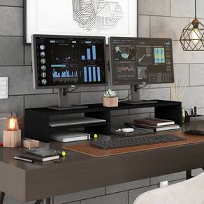 Que tal o Suporte Stand Base Para Tela Monitor Laptop Soft Elevado em MDF com 01 Prateleira?