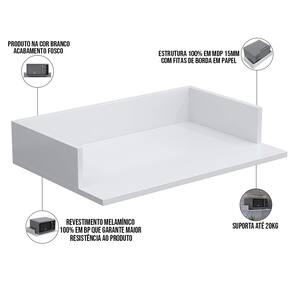 Características: Estrutura 100% em MDP 15mm. Fitas com borda de papel. Revestimento melamínico 100% em BP, que garante maior resistência ao produto. Suporta até 20Kg. Produto na Cor Branco, com acabamento Fosco.