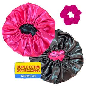 Kit 04 Toucas de Cetim Antifrizz Dupla Face Ajustável + Xuxinha - Cor: Pink e Preto