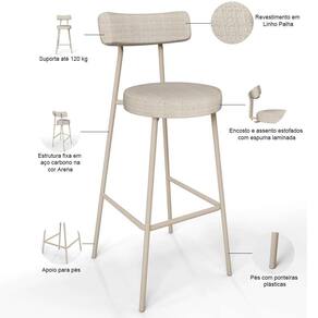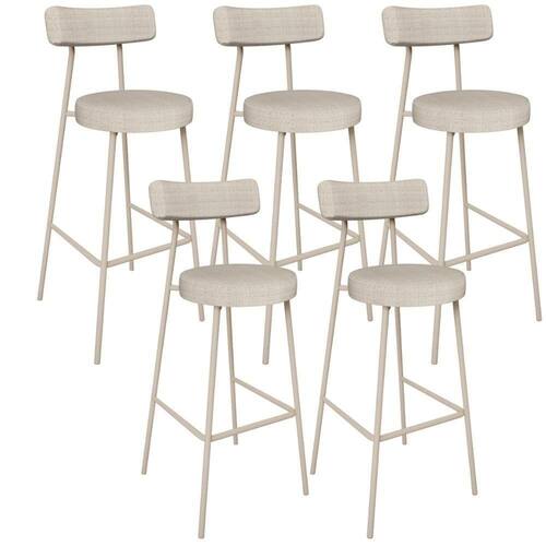 Kit 5 Banquetas Milão Arena L02 Assento Linho Estrutura Aço com Encosto Altura 75 cm Bege