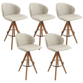 Color: Bege | ColorFamily: Bege | ColorSimple: Bege | ColorSupplier: Champagne | Material: Estrutura em Madeira, Revestimento em Linho e espuma | MaterialFamily: Madeira, linho e espuma | Model: Mia | OriginCountry: Nacional | OriginState: PR | ProductContents: 05 Banquetas | ProductHeight: 260 cm | ProductInstructions: Produto para uso em ambiente interno, nao devendo ficar exposto ao sol, calor e umidade excessivos. | ProductLength: 49 cm | ProductWarranty: 90 dias após o recebimento do produto | ProductWeight: 50 kg | ProductWidth: 52 cm | SizeDescription: Altura: 260 cm x Largura: 52 cm x Profundidade: 49 cm | SupplierSimpleName: Kit 05 Banquetas Alta Bar Cozinha Sala de Jantar Bar Mia L02 Linho Champagne - Lyam Decor