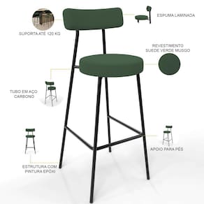 Amplamente moderna, dispondo de muito realce e design singular, a Banqueta Alta Bar Cozinha Sala De Jantar Estrutura Em Aço Milão L02 Suede Verde Musgo- Lyam Decor vem com a personalidade e elegância que sua decoração merece! Estruturada em aço carbono, contrasta lindamente com o encosto e assento estofados, cabe mencionar ainda seu revestimento em Linho, é confeccionada por materiais de excelente qualidade, extremamente resistentes e aconchegantes.