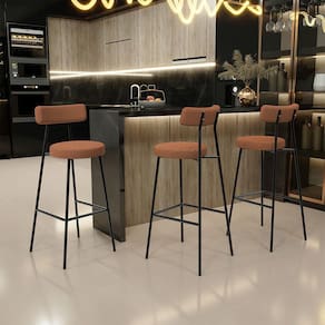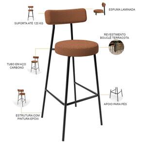 Amplamente moderna, dispondo de muito realce e design singular, a Banqueta Alta Bar Cozinha Sala De Jantar Estrutura Em Aço Milão L02 Bouclê Terracota - Lyam Decor vem com a personalidade e elegância que sua decoração merece! Estruturada em aço carbono, contrasta lindamente com o encosto e assento estofados, cabe mencionar ainda seu revestimento em Bouclê, é confeccionada por materiais de excelente qualidade, extremamente resistentes e aconchegantes.
