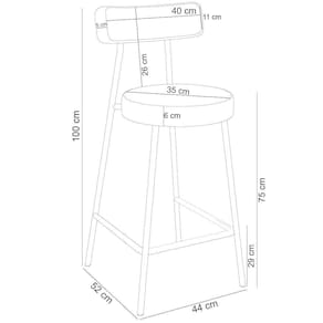 Altura do assento 75 cm: ideal para uso em bancadas e balcões elevados.