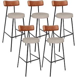 Amplamente moderna, dispondo de muito realce e design singular, o Kit 05 Banquetas Alta Bar Cozinha Sala De Jantar Aço Milão L02 Couríssimo Camel Linho Bege - Lyam Decor vem com a personalidade e elegância que sua decoração merece! Estruturada em aço carbono, contrasta lindamente com o encosto e assento estofados, cabe mencionar ainda o revestimento do seu encosto em Couríssimo e do assento em Linho, é confeccionada por materiais de excelente qualidade, extremamente resistentes e aconchegantes.
