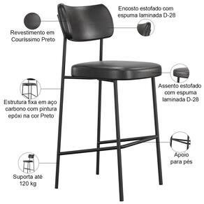 Para você que busca conforto, realce e praticidade, O Kit 05 Banquetas Alta Estofada Elira vai superar todas as suas expectativas! Garante muita comodidade e otimiza o espaço, além de harmonizar com seu estilo decorativo facilmente, podendo ser utilizada em bancadas, cozinha americana, espaço gourmet ou home bar, trazendo um toque especial em sua decoração. Sua proposta de design suavizará seu ambiente sem passar despercebida oferecendo mais leveza e receptividade ao seu lar. Estruturada em aço carbono, contrasta lindamente com o encosto e assento estofados que são extremamente confortáveis, resistentes e aconchegantes. Você merece esta incrível combinação em sua casa, adquira já a sua!