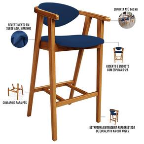 A melhor escolha para os momentos de confraternização no aconchego da sua casa, acaba de chegar! O Kit 05 Banquetas Alta Para Cozinha Bancada Bar Sala de Jantar Fixa Cecília L02 Suede Azul Marinho - Lyam vem com a personalidade e elegância que sua decoração merece! É ideal desde refeições rápidas, até um Happy Hour com os amigos, família. Seu design único valoriza o ambiente, sem deixar pra trás a beleza e qualidade! Para deixar a sua área gourmet mais aconchegante, ela possui assento e encosto estofados, confeccionados com materiais de excelente qualidade, e extremamente resistentes.