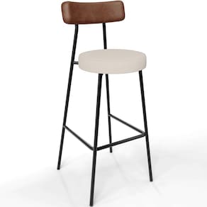 Revestimento do encosto em Couríssimo na cor Marrom e assento revestido em Linho na cor Cru, com acabamento semi brilho.