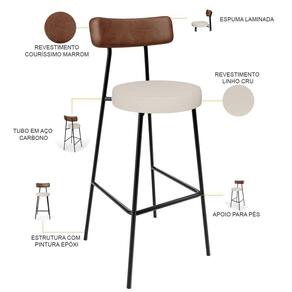 Amplamente moderna, dispondo de muito realce e design singular, o Kit 05 Banquetas Alta Bar Cozinha Sala De Jantar Em Aço Milão L02 Couríssimo Marrom Linho Cru - Lyam Decor vem com a personalidade e elegância que sua decoração merece! Estruturada em aço carbono, contrasta lindamente com o encosto e assento estofados, cabe mencionar ainda o revestimento do seu encosto em Couríssimo e do assento em Linho, é confeccionada por materiais de excelente qualidade, extremamente resistentes e aconchegantes.