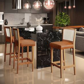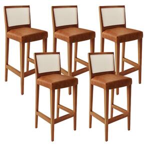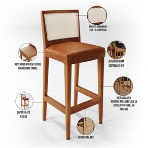 O Kit 05 Banquetas Alta Para Cozinha Sala de Jantar Fixa Telado Branco Zion L02 Couríssimo Camel - Lyam Decor, possui um estilo rustico que faltava para deixar sua casa ainda mais clássica. Seu encosto com o detalhe de tela sintética na cor branca trazem ainda mais estilo e destaque para sua decoração, junto com assento estofado que proporciona horas de conforto. A estrutura e o apoio para os pés, são responsáveis por garantir maior segurança à mesma.