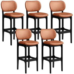 Amplamente sofisticado, o Kit 05 Banquetas Alta Para Cozinha Madeira Fixa Betta L02 Preto Couríssimo Camel - Lyam Decor irá agregar ainda mais valor em sua decoração!! Sendo capaz de compor muito bem o ambiente, é produzido com materiais de excelente qualidade, a resistente estrutura em madeira de Taeda, na cor preto, conta com apoio para os pés (que garante maior segurança), além do assento e encosto estofados super confortáveis e convidativos, que são revestidos em tecido Couríssimo, extremamente elegante.