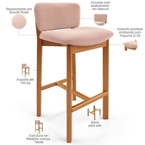 Na cozinha ou qualquer outro ambiente, o Kit 05 Banquetas Alta Para Cozinha Sala de Jantar Bar Dara se destaca por seu design clássico, sem deixar de exaltar a delicadeza deste modelo. Com uma estrutura de madeira que exala nobreza e sofisticação, essa banqueta estofada é o convite perfeito para momentos de confraternizar. O estofado macio, harmoniza com os demais elementos do ambiente, além do encosto proporcionar muito conforto enquanto se desfruta de momentos incríveis com aconchego. A vida é feita de pequenas celebrações, e essa banqueta está pronta para torná-las ainda mais especiais. Adicione ao seu carrinho e aproveite!