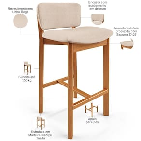 Na cozinha ou qualquer outro ambiente, o Kit 05 Banquetas Alta Para Cozinha Sala de Jantar Bar Dara se destaca por seu design clássico, sem deixar de exaltar a delicadeza deste modelo. Com uma estrutura de madeira que exala nobreza e sofisticação, essa banqueta estofada é o convite perfeito para momentos de confraternizar. O estofado macio, harmoniza com os demais elementos do ambiente, além do encosto proporcionar muito conforto enquanto se desfruta de momentos incríveis com aconchego. A vida é feita de pequenas celebrações, e essa banqueta está pronta para torná-las ainda mais especiais. Adicione ao seu carrinho e aproveite!