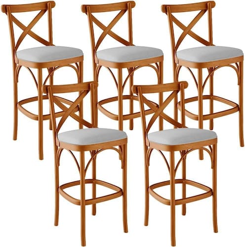 Kit 05 Banquetas Altas Cozinha Bancada Bar Sala De Jantar Estofada ávila L02 Linho Cinza - Lyam