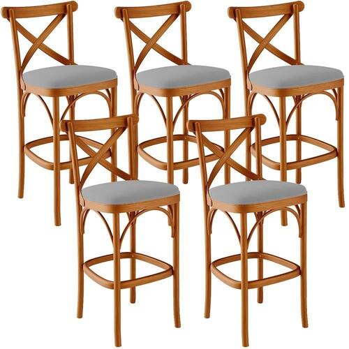 Kit 05 Banquetas Altas Cozinha Bancada Bar Sala De Jantar Estofada ávila L02 Suede Cinza - Lyam