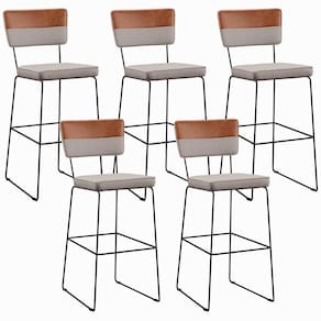 O espetáculo que é o Kit 05 Banquetas Altas Sala De Jantar Fixa Allana L02 Faixa Couríssimo Camel Linho Bege - Lyam Decor vem para agregar ainda mais valor na decoração da sua casa. Sua estrutura em aço remete-nos ao estilo industrial que surgiu em Nova York no século XX, já o assento e encosto estofados trazem equilíbrio e conforto criando a combinação perfeita para o ambiente.