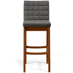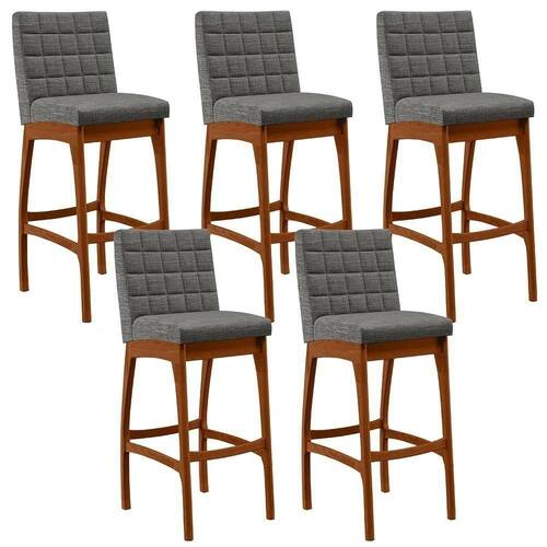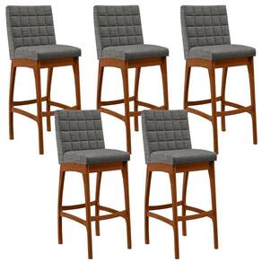 ndo muita excelência, o Kit 05 Banquetas Altas Para Cozinha Sala de Jantar Fixa Mila B04 Linho Cinza Escuro - Lyam Decor é o complemento que faltava para deixar sua casa ainda mais extraordinária. Seu encosto com costura em padrão quadriculado e assento estofados, centralizam em si uma graciosidade estonteante, sem perder todo o seu conforto. A estrutura em madeira, na cor nozes, também é digna de notoriedade, por imprimir bastante personalidade a sua decoração. Vale ressaltar ainda, o apoio para os pés que garante maior segurança à mesma.