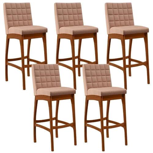 ndo muita excelência, o Kit 05 Banquetas Altas Para Cozinha Sala de Jantar Fixa Mila B04 Linho Rosê - Lyam Decor é o complemento que faltava para deixar sua casa ainda mais extraordinária. Seu encosto com costura em padrão quadriculado e assento estofados, centralizam em si uma graciosidade estonteante, sem perder todo o seu conforto. A estrutura em madeira, na cor nozes, também é digna de notoriedade, por imprimir bastante personalidade a sua decoração. Vale ressaltar ainda, o apoio para os pés que garante maior à mesma.