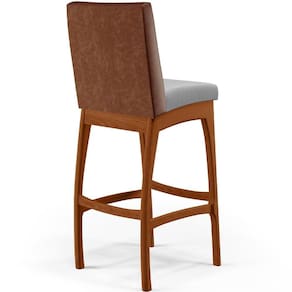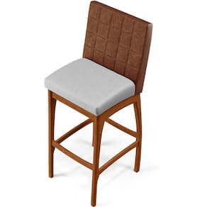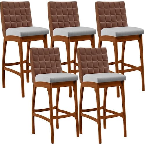 ndo muita excelência, o Kit 05 Banquetas Altas Cozinha Sala Jantar Fixa Mila B04 Couríssimo Marrom Linho Cinza - Lyam Decor é o complemento que faltava para deixar sua casa ainda mais extraordinária. Seu encosto com costura em padrão quadriculado e assento estofados, centralizam em si uma graciosidade estonteante, sem perder todo o conforto. A estrutura em madeira, na cor nozes, também é digna de notoriedade, por imprimir bastante personalidade a sua decoração. Vale ressaltar ainda, o apoio para os pés que garante maior à banqueta.