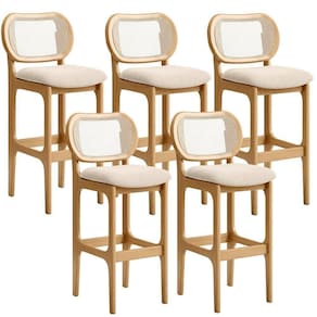 Kit 05 Banquetas Altas Para Cozinha Bancada Sala Tela Betta Fixa L02 Suede Bege - Lyam