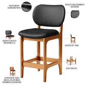 Amplamente sofisticada, o Kit 05 Banquetas Baixa Bar Cozinha Sala Jantar Betta L02 Imbuia Couríssimo Preto - Lyam Decor irá agregar ainda mais valor em sua decoração!! Sendo capaz de compor muito bem o ambiente, é produzida com materiais de excelente qualidade, a resistente estrutura em madeira de Taeda, na cor imbuia, conta com apoio para os pés (que garante maior segurança), além do assento e encosto estofados super confortáveis e convidativos, que são revestidos em tecido Couríssimo, composição extremamente elegante.