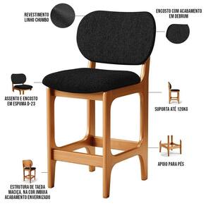 Amplamente sofisticada, o Kit 05 Banquetas Baixa Bar Cozinha Sala Jantar Betta L02 Imbuia Linho Chumbo - Lyam Decor irá agregar ainda mais valor em sua decoração!! Sendo capaz de compor muito bem o ambiente, é produzida com materiais de excelente qualidade, a resistente estrutura em madeira de Taeda, na cor imbuia, conta com apoio para os pés (que garante maior ), além do assento e encosto estofados super confortáveis e convidativos, que são revestidos em tecido Couríssimo, composição extremamente elegante.