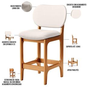 Amplamente sofisticada, o Kit 05 Banquetas Baixa Bar Cozinha Sala Jantar Betta L02 Imbuia Linho Cru - Lyam Decor irá agregar ainda mais valor em sua decoração!! Sendo capaz de compor muito bem o ambiente, é produzida com materiais de excelente qualidade, a resistente estrutura em madeira de Taeda, na cor imbuia, conta com apoio para os pés (que garante maior segurança), além do assento e encosto estofados super confortáveis e convidativos, que são revestidos em tecido Couríssimo, composição extremamente elegante.