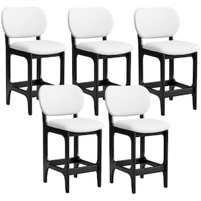 Amplamente sofisticada, o Kit 05 Banquetas Baixa Bar Cozinha Sala Jantar Betta L02 Facto Branco - Lyam Decor irá agregar ainda mais valor em sua decoração!! Sendo capaz de compor muito bem o ambiente, é produzida com materiais de excelente qualidade, a resistente estrutura em madeira de Taeda, na cor Preto, conta com apoio para os pés (que garante maior segurança), além do assento e encosto estofados super confortáveis e convidativos, que são revestidos em tecido Couríssimo, composição extremamente elegante.