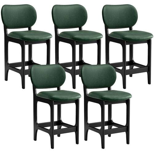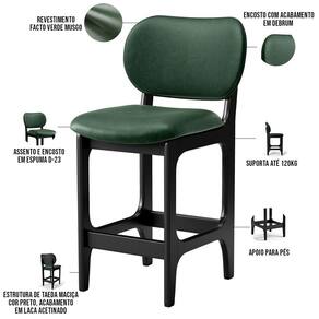 Amplamente sofisticada, o Kit 05 Banquetas Baixa Bar Cozinha Sala Jantar Betta L02 Facto Verde Musgo - Lyam Decor irá agregar ainda mais valor em sua decoração!! Sendo capaz de compor muito bem o ambiente, é produzida com materiais de excelente qualidade, a resistente estrutura em madeira de Taeda, na cor Preto, conta com apoio para os pés (que garante maior segurança), além do assento e encosto estofados super confortáveis e convidativos, que são revestidos em tecido Couríssimo, composição extremamente elegante.