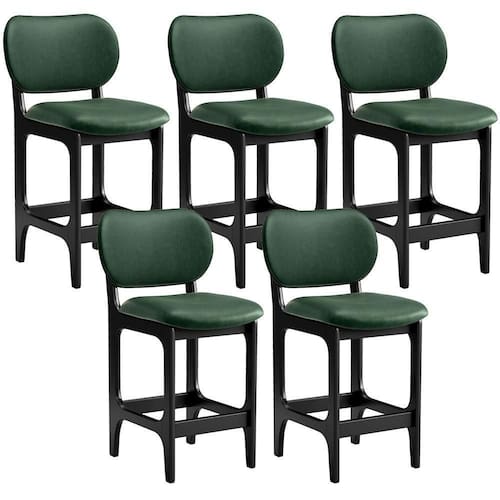 Amplamente sofisticada, o Kit 05 Banquetas Baixa Bar Cozinha Sala Jantar Betta L02 Facto Verde Musgo - Lyam Decor irá agregar ainda mais valor em sua decoração!! Sendo capaz de compor muito bem o ambiente, é produzida com materiais de excelente qualidade, a resistente estrutura em madeira de Taeda, na cor Preto, conta com apoio para os pés (que garante maior ), além do assento e encosto estofados super confortáveis e convidativos, que são revestidos em tecido Couríssimo, composição extremamente elegante.