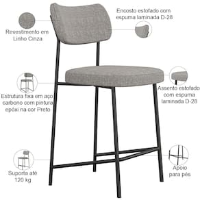 Para você que busca conforto, realce e praticidade, o Kit 05 Banquetas Baixa Estofada Elira vai superar todas as suas expectativas! Garante muita comodidade e otimiza o espaço, além de harmonizar com seu estilo decorativo facilmente, podendo ser utilizada em bancadas, cozinha americana, espaço gourmet ou home bar, trazendo um toque especial em sua decoração. Sua proposta de design suavizará seu ambiente sem passar despercebida oferecendo mais leveza e receptividade ao seu lar. Estruturada em aço carbono, contrasta lindamente com o encosto e assento estofados que são extremamente confortáveis, resistentes e aconchegantes. Você merece esta incrível combinação em sua casa, adquira já a sua!