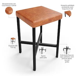 Color: Marrom | ColorFamily: Marrom | ColorSimple: Marrom | ColorSupplier: Camel | Material: Estrutura de aço carbono, Revestimento em Couríssimo e espuma | MaterialFamily: Aço carbono, couro sintético e espuma | Model: Stella | OriginCountry: Nacional | OriginState: PR | ProductContents: 05 Banquetas | ProductHeight: 98 cm | ProductInstructions: Produto para uso em ambiente interno, nao devendo ficar exposto ao sol, calor e umidade excessivos. | ProductLength: 37 cm | ProductWarranty: 90 dias após o recebimento do produto | ProductWeight: 20 kg | ProductWidth: 39 cm | SizeDescription: Altura: 98 cm x Largura: 39 cm x Profundidade: 37 cm | SupplierSimpleName: Kit 05 Banquetas Baixa Bar Cozinha Sala De Jantar Preto Stella L02 Couríssimo Camel - Lyam Decor