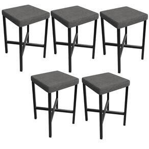 Color: Cinza | ColorFamily: Cinza | ColorSimple: Cinza | ColorSupplier: Cinza | Material: Estrutura de aço carbono, Revestimento em Linho e espuma | MaterialFamily: Aço carbono, linho espuma | Model: Stella | OriginCountry: Nacional | OriginState: PR | ProductContents: 05 Banquetas | ProductHeight: 98 cm | ProductInstructions: Produto para uso em ambiente interno, nao devendo ficar exposto ao sol, calor e umidade excessivos. | ProductLength: 37 cm | ProductWarranty: 90 dias após o recebimento do produto | ProductWeight: 20 kg | ProductWidth: 39 cm | SizeDescription: Altura: 98 cm x Largura: 39 cm x Profundidade: 37 cm | SupplierSimpleName: Kit 05 Banquetas Baixa Bar Cozinha Sala De Jantar Preto Stella L02 Linho Cinza Escuro - Lyam Decor