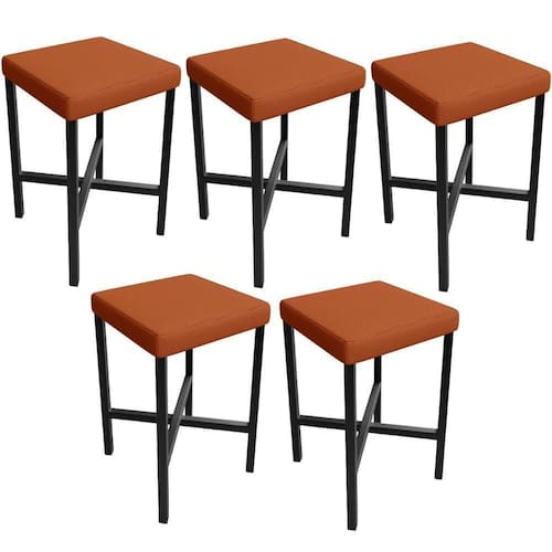 Color: Laranja | ColorFamily: Laranja | ColorSimple: Laranja | ColorSupplier: Terracota | Material: Estrutura de aço carbono, Revestimento em Tecido e espuma | MaterialFamily: Aço carbono, tecido e espuma | Model: Stella | OriginCountry: Nacional | OriginState: PR | ProductContents: 05 Banquetas | ProductHeight: 98 cm | ProductInstructions: Produto para uso em ambiente interno, nao devendo ficar exposto ao sol, calor e umidade excessivos. | ProductLength: 37 cm | ProductWarranty: 90 dias após o recebimento do produto | ProductWeight: 20 kg | ProductWidth: 39 cm | SizeDescription: Altura: 98 cm x Largura: 39 cm x Profundidade: 37 cm | SupplierSimpleName: Kit 05 Banquetas Baixa Bar Cozinha Sala De Jantar Preto Stella L02 Tecido Terracota - Lyam Decor