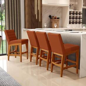 ndo muita excelência, o Kit 05 Banquetas Baixa Para Cozinha Bancada Bar Sala De Jantar Fixa Mila L02 Tecido Terracota - Lyam Decor é o complemento que faltava para deixar sua casa ainda mais extraordinária. Seu encosto com costura em padrão quadriculado e assento estofados, centralizam em si uma graciosidade estonteante, sem perder todo o seu conforto. A estrutura em madeira, na cor nozes, também é digna de notoriedade, por imprimir bastante personalidade a sua decoração. Vale ressaltar ainda, o apoio para os pés que garante maior à mesma. Pode ser acomodada em cozinha americana, ambientes integrados, espaços gourmets, bancadas ou em seu home bar, independente do lugar, ela desperta logo de cara bastante elegância e deixa tudo mais despojado, perfeita para criar um ambiente harmonioso e agradável para receber a família e amigos, quando favorável.