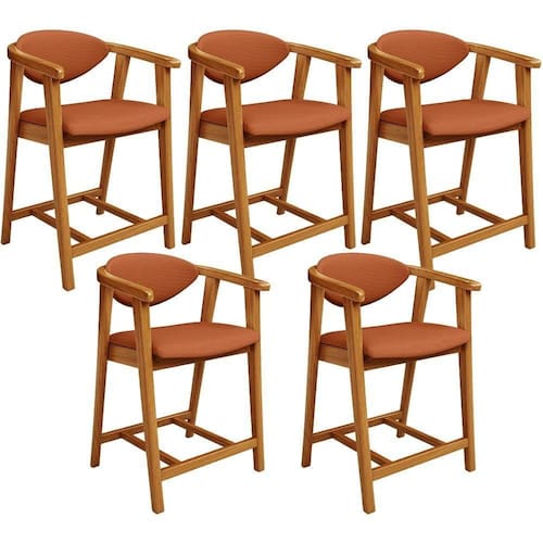 Altura da cadeira: 75 cm | Altura do assento a partir do solo: 60 cm | Color: Laranja | ColorFamily: Laranja | ColorSimple: Laranja | ColorSupplier: Terracota | Com apoio de braços: Sim | Cor: Terracota | Cor da estrutura da cadeira: Nozes | Cor do assento: Terracota | Cor do estofamento: Terracota | Desenho do tecido: Liso | Diâmetro: na | É cadeira de balanço: Não | É dobrável: Não | É empilhável: Não | Espessura do assento: 4,5 cm | Fabricante: Lyam Decor | Firmeza: Firme | Largura da cadeira: 51 cm | Largura do assento: 44 cm | Material: Estrutura em madeira de reflorestamento de eucalipto vermelho tratado. | Material do estofamento: Espuma D-28 | MaterialFamily: Madeira ,Tecido | Model: Cecília | OriginCountry: | OriginState: PR | Peso máximo suportado: 120 kg | ProductContents: 05 Banquetas | ProductHeight: 76 cm | ProductInstructions: Produto para uso em ambiente interno, nao devendo ficar exposto ao sol, calor e umidade excessivos. | ProductLength: 96 cm | ProductWarranty: 90 dias após o do produto | ProductWeight: 40 kg | ProductWidth: 156 cm | Profundidade da cadeira: 47 cm | Profundidade do assento: 46,5 cm | SizeDescription: Altura: 76 cm x Largura: 156 cm x Profundidade: 96 cm | SupplierSimpleName: Kit 05 Banquetas Baixa Cozinha Sala de Jantar Bancada Cecília L02 Tecido Terracota - Lyam Decor | Tempo de montagem: na