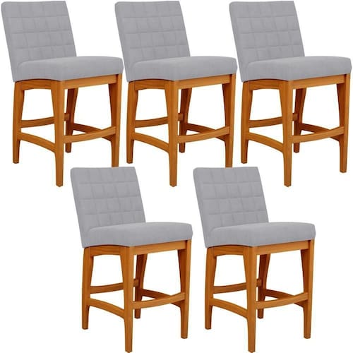 ndo muita excelência, o Kit 05 Banquetas Baixa Para Cozinha Bancada Bar Sala De Jantar 90 cm Fixa Mila L02 Suede Cinza - Lyam Decor é o complemento que faltava para deixar sua casa ainda mais extraordinária. Seu encosto com costura em padrão quadriculado e assento estofados, centralizam em si uma graciosidade estonteante, sem perder todo o seu conforto. A estrutura em madeira, na cor nozes, também é digna de notoriedade, por imprimir bastante personalidade a sua decoração. Vale ressaltar ainda, o apoio para os pés que garante maior à mesma.
