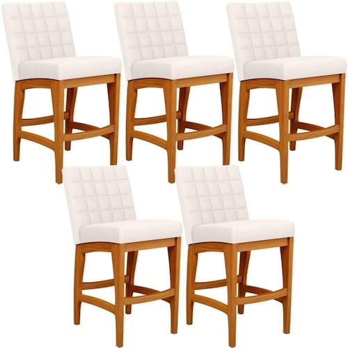 ndo muita excelência, o Kit 05 Banquetas Baixa Para Cozinha Bancada Bar Sala De Jantar 90 cm Fixa Mila L02 Linho Cru - Lyam Decor é o complemento que faltava para deixar sua casa ainda mais extraordinária. Seu encosto com costura em padrão quadriculado e assento estofados, centralizam em si uma graciosidade estonteante, sem perder todo o seu conforto. A estrutura em madeira, na cor nozes, também é digna de notoriedade, por imprimir bastante personalidade a sua decoração. Vale ressaltar ainda, o apoio para os pés que garante maior à mesma.