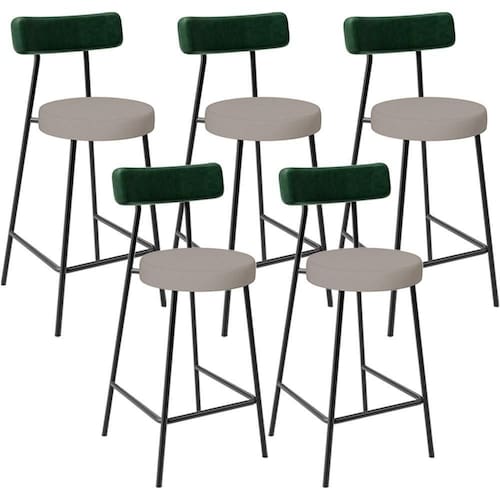 Kit 05 Banquetas Baixa Cozinha E Sala Jantar Bancada Milão L02 Facto Verde Linho Bege - Lyam Decor - Preto