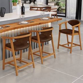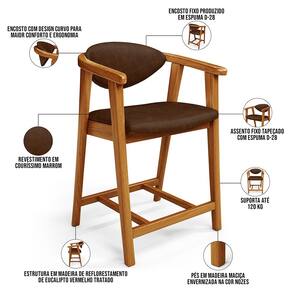 Kit 05 Banquetas Baixa Para Cozinha Sala Jantar Bancada Cecília L02 Couríssimo Marrom - Lyam Decor