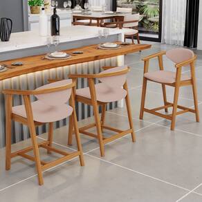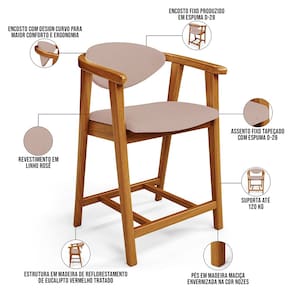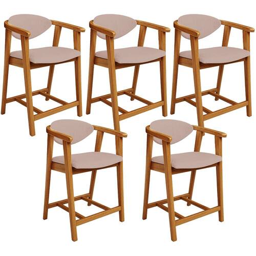 Kit 05 Banquetas Baixa Para Cozinha Sala Jantar Bancada Cecília L02 Linho Rosê - Lyam Decor - Rosa