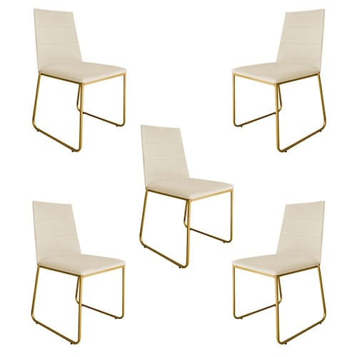 Kit 05 Cadeira de Jantar Estofada Lille Base Gold Courino Bege - Montanaris Decor